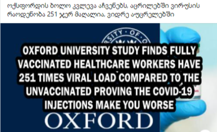 ხალხო გაიგეთ ვინც გცრით თქვენი მტერია. Posted by: გიორგი ფრანგიშვილი 11/02/2022 563 Views ოქსფორდის ბოლო კვლევის მიხედვით, აცრილებში ვირუსის რაოდენობა 251-ჯერ მაღალია, ვიდრე აუცრელებში. აი თურმე რატომ ინფიცირდებიან პანტაპუნტით აცრილები და იშვიათად აუცრელები. ხალხო გაიგეთ ვინც გცრით თქვენი მტერია. 2022-02-11 გიორგი ფრანგიშვილი